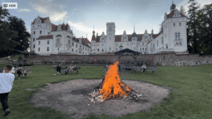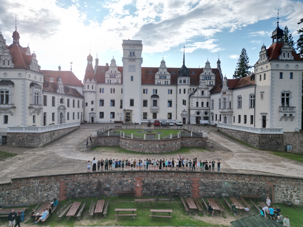 Ob nun die steile Wendeltreppe zum Speisesaal, der Diskokeller, die Ziegen im Schloßgarten oder der parkeigene Strand – es gab unglaublich viel zu erleben und zu entdecken. Und auch die Ausflüge in das Naturschutzgebiet mit Klosterruine und unberührter Natur oder die Wanderung zur voll funktionsfähigen Wassermühle – mit viel Abwechslung war für jeden etwas dabei. Und als dann am letzten Abend noch die Klassenduelle anstanden, war auch die Kreativität und die Lachmuskulatur gefragt.