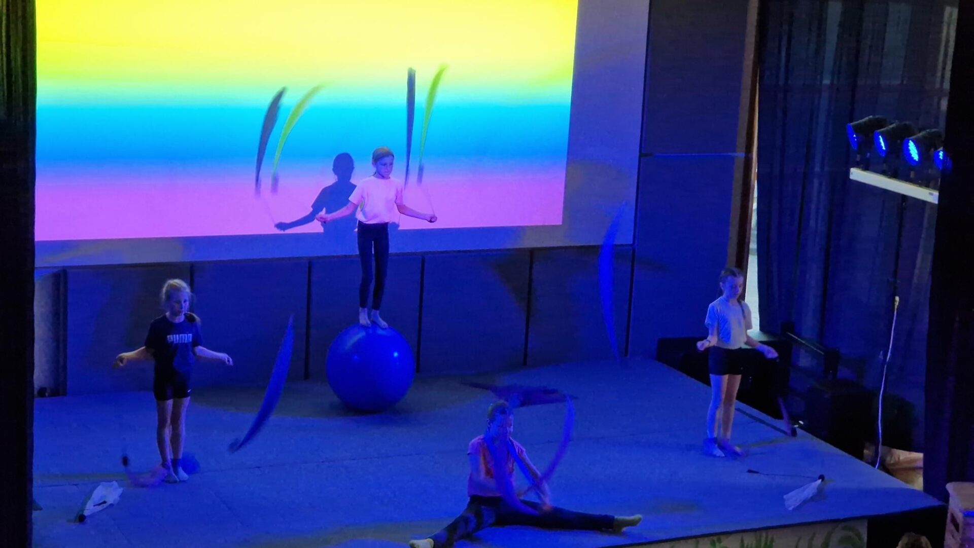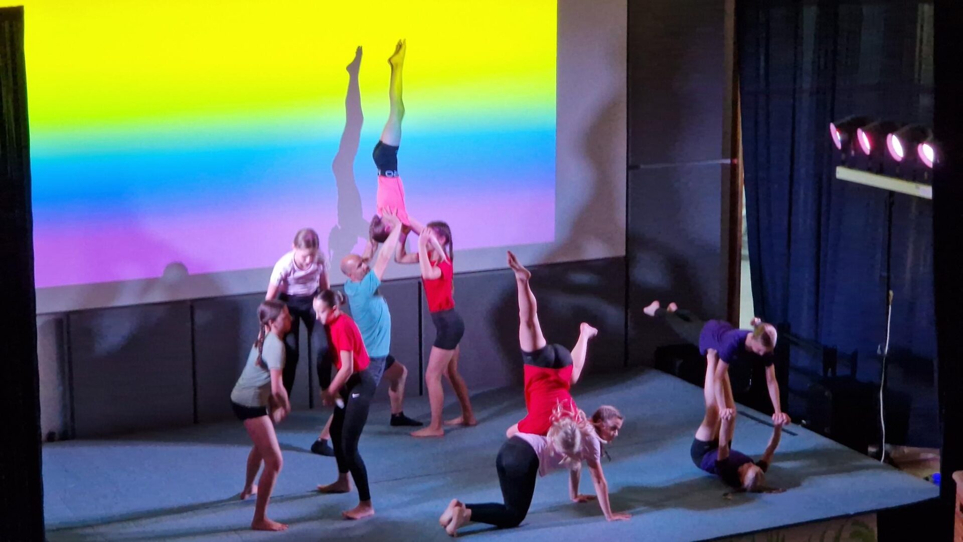 Der zweite Teil besteht aus Akrobatik mit dem Körper. Hier werden Handstände und Brücken erlernt, auf Kugeln balanciert oder spektakuläre Menschenpyramiden kreiert und erlernt. Dabei steht natürlich an erster Stelle die Sicherheit, trotzdem können sich die Lernerfolge und der Spaß in der AG zeigen lassen.